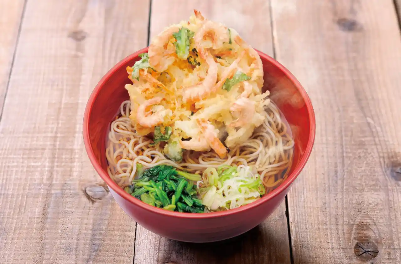 箱根そば本陣は、箱根そばのワンランク上の業態として、そば粉に外皮入りの粗挽き粉を配合した香り高いこだわりの蕎麦、出汁感を高めたつゆ、かき揚げには小海老を使用しております。新宿駅西口地下街にあり、小田急線や京王線、JR線等の複数路線からのアクセスも抜群ですので、ぜひお立ち寄りください。 |