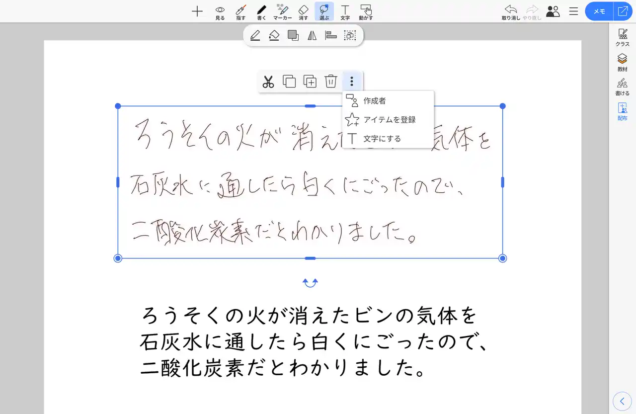 手書きで書いた文字をあとからテキストに変換します。 |