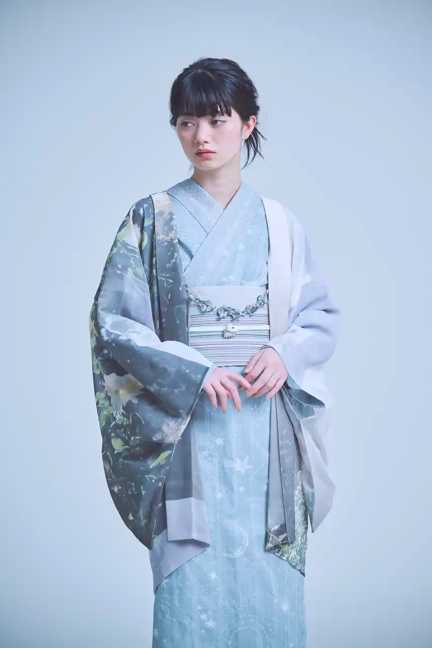 本コラボレーションは、洋服はもちろん、きものでも幾通りにも楽しめる作品となっております。 |