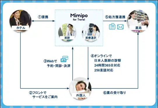 当社では、訪日外国人旅行者の増加を背景に、空港送迎や飲食予約、通信、子連れ対応など、滞在前から滞在中までをシームレスにサービスすることで、より快適で充実した滞在を提供する「トラベルアシスタンスサービス」の拡充を進めています。今回の「Mimipo for Travel」導入により、訪日ゲストの医療面における支援体制を強化し、より安心してご利用いただける環境の実現を目指してまいります。 |