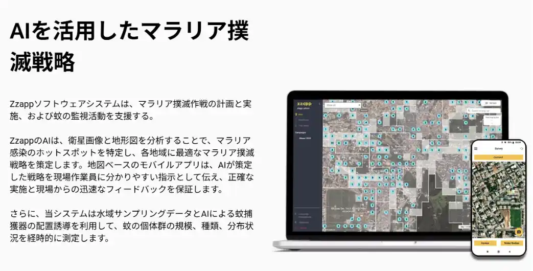 また、Zmartの衛星・GISデータ解析技術とソラテクノロジーのドローン・AIによる現地オペレーションを統合することで、より効率的でスケーラブルなマラリア対策の実装を推進していきます。さらに、感染症対策に加え、気候変動や農業分野への応用も視野に入れています。 |