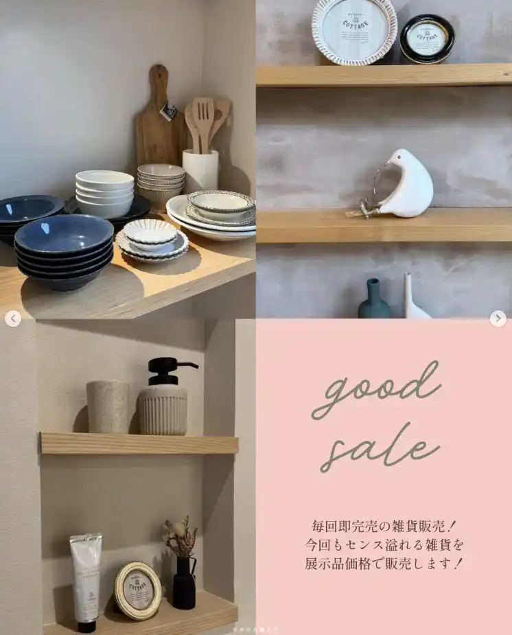 モデルハウスにディスプレイしていた雑貨を特別価格で販売。先着順。 |
