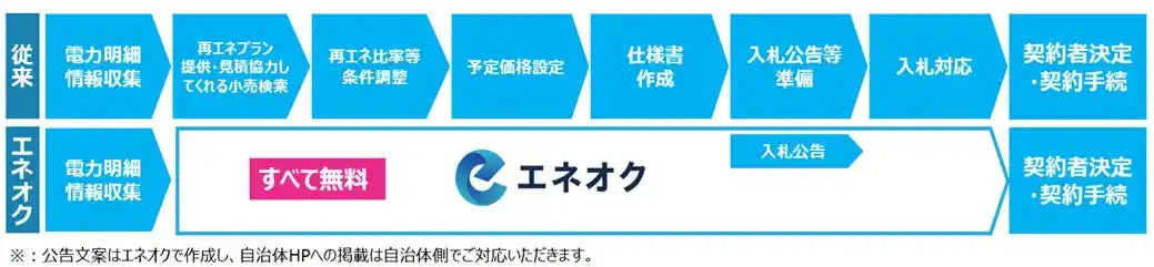 | エネオクの導入にあたり、どのように進めるべきかを検討する際にはエナーバンクからの具体的なサポートがあり、非常に分かりやすかったです。リバースオークションサービスと併せて、予定価格の積算や仕様書の作成など、従来自治体職員の業務であった調達業務の一部をアウトソーシングすることで業務効率化にも繋がりました。 | ||||