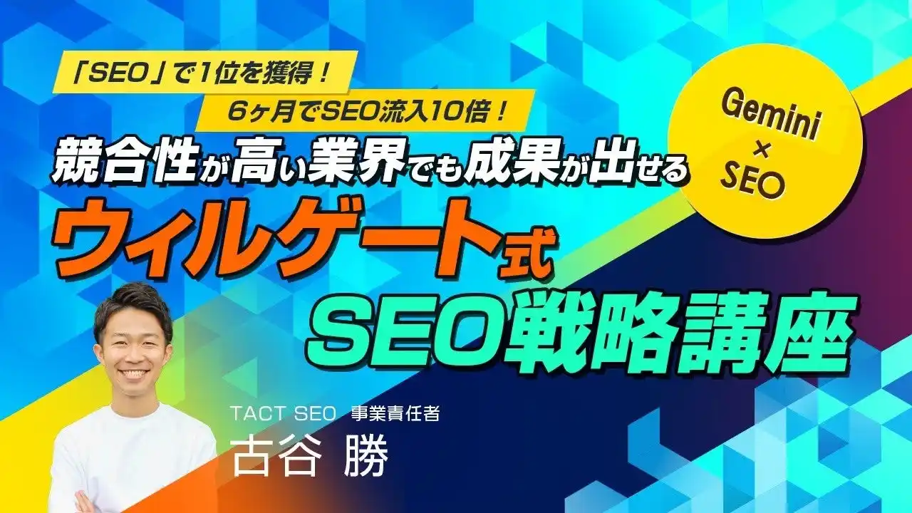 2006年創業「SEO対策」で実績1位の会社が作った、AI×SEOツール「TACT SEO」。ツールを使った最新のSEO対策のノウハウはもちろん、今話題のAIOやLLMOの動向などもご紹介します。SEO施策に課題をお持ちの方、Webサイトへの集客で費用対効果を改善したい企業は必見のセミナーです。 |
