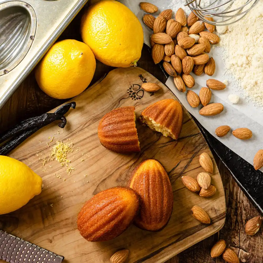 ドイツの最高級マジパンローマッセと卵黄、生クリーム、バターをたっぷりと使い、それらをドイツ製のミキサーでしっかり混ぜ、乳化させることによって、このアーモンド風味豊かなしっとりとした焼菓子を作り上げることができました。 |