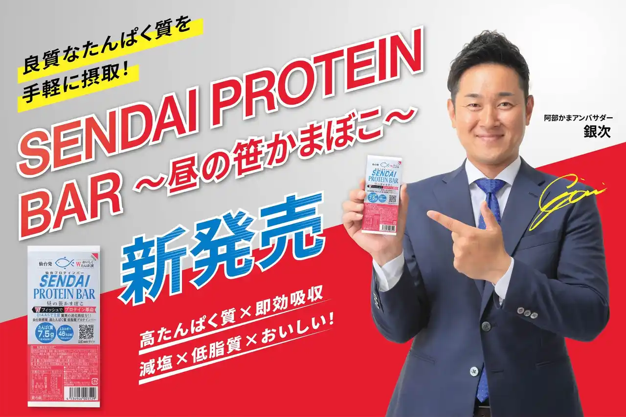 | 株式会社阿部蒲鉾店(本社:宮城県仙台市、代表取締役社長:阿部賀寿男)は、独自の製造技術により、初の試みとなる「まぐろ由来成分」を配合した新商品『SENDAI PROTEIN BAR ~昼の笹かまぼこ~』を2026年4月8日(水)より発売いたします。 | |||