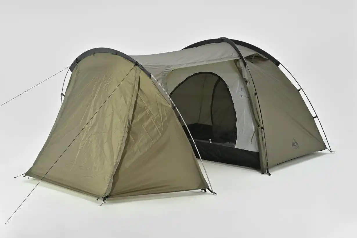 広々とした前室は、大きなキャンプギアを置くストレージとしてはもちろん、チェアに深く腰掛けてコーヒーを楽しむリビングスペースとしても活躍できます。一方で後室は、汚れがちなライディングブーツや就寝時に場所を取りがちな手荷物の一時保管場所として使用可能です。この「前後室」を分けた贅沢な設計により、ソロキャンプでも閉塞感を感じることなく、自宅のリビングにいるような開放感に包まれてゆったりと一夜を過ごせます。 |