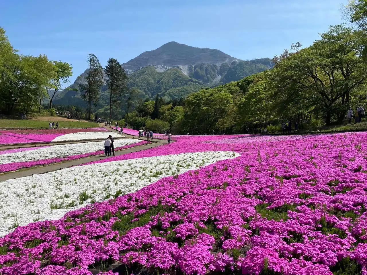 秩父のシンボル武甲山の麓、羊山公園にある秩父の春の名所「芝桜の丘」で開催されるイベント。芝桜の植栽面積は約17,600平方メートル 。10品種、40万株以上のいろとりどりの芝桜が咲く様子はまるで「花のパッチワーク」のようです。 |