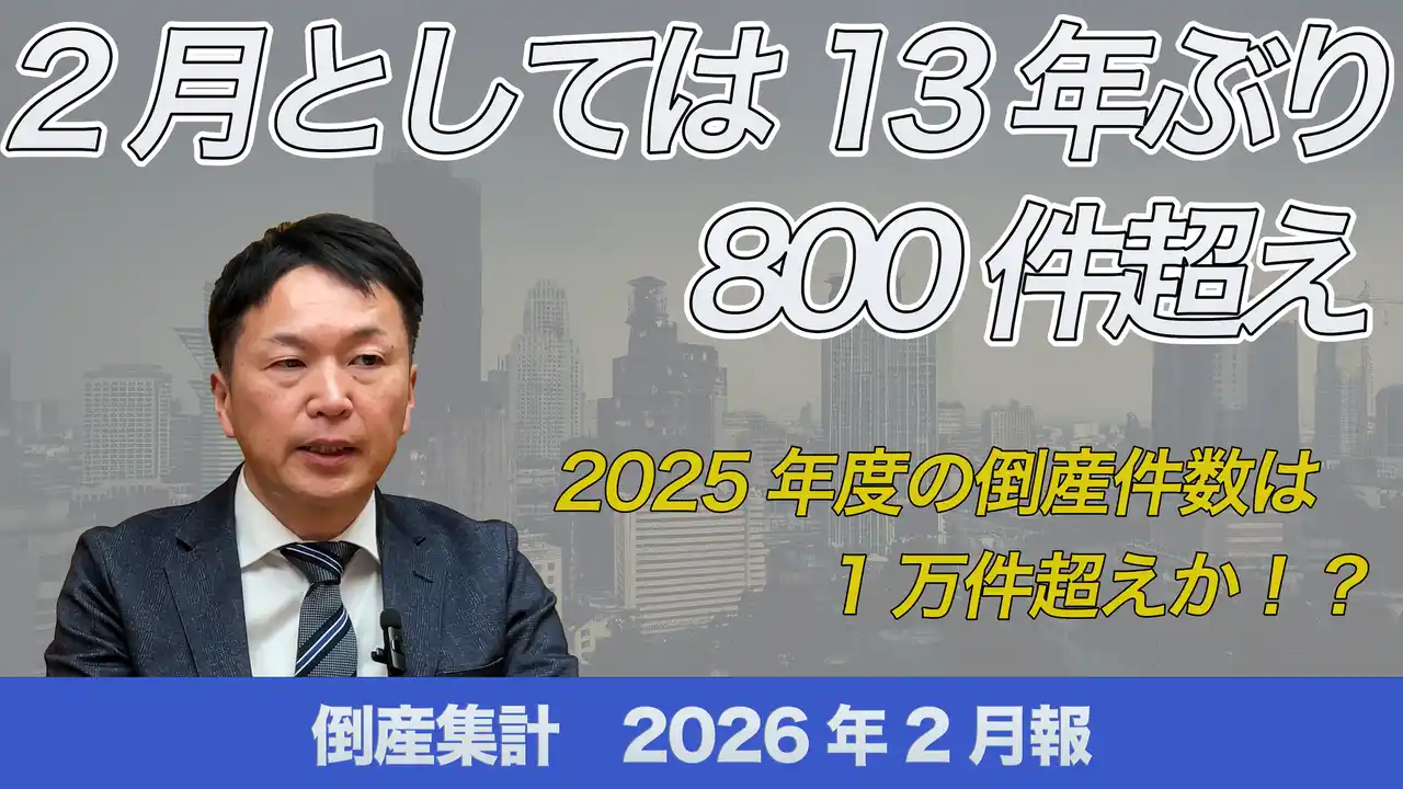 ■タイトル :【動画】倒産集計2026年2月報 ~2月としては13年ぶりの800件超え~ |