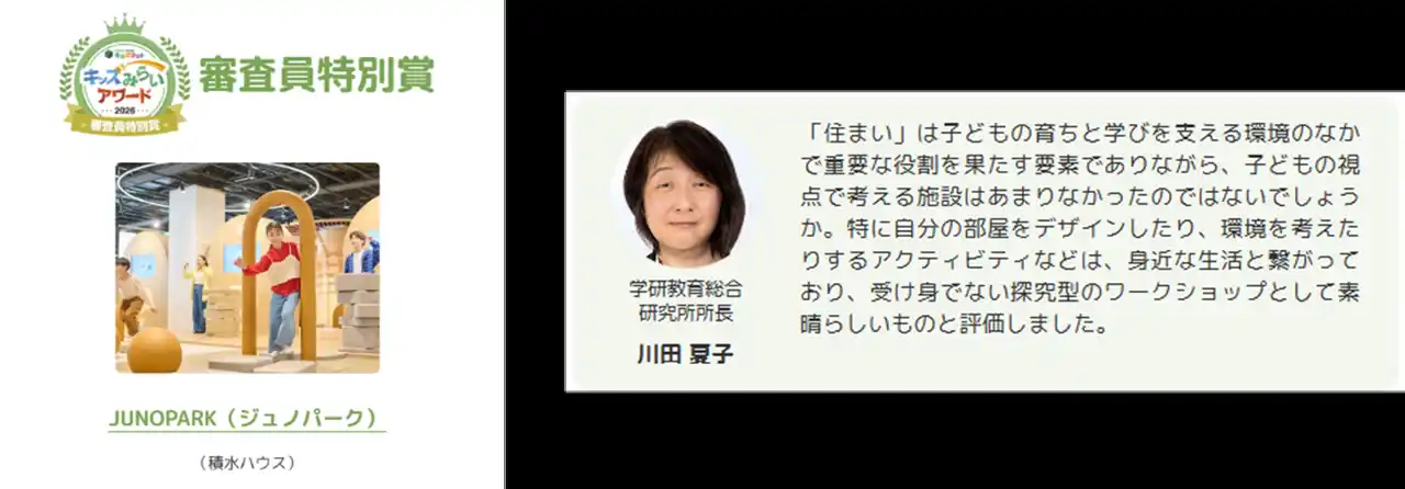 審査員特別賞(学研教育総合研究所所長 川田夏子) 積水ハウス「JUNOPARK(ジュノパーク)」 |