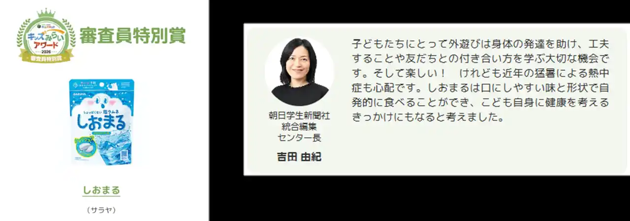 審査員特別賞(朝日学生新聞社総合編集センター長 吉田由紀) サラヤ「しおまる」 |