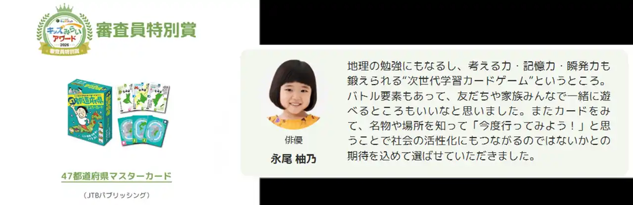 審査員特別賞(俳優 永尾柚乃) JTBパブリッシング「47都道府県マスターカード」 |