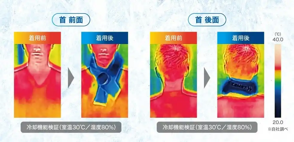 | 未使用時と比べて、-20℃で首回り全体を冷却します。 | ||||||||||||