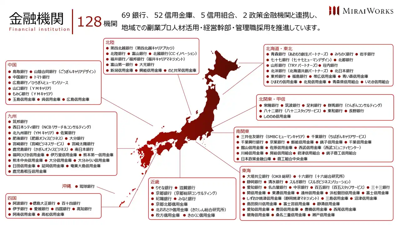株式会社みらいワークス(本社:東京都港区、代表取締役社長 岡本 祥治、以下「当社」)は、福岡ひびき信用金庫(本店所在地:福岡県北九州市八幡東区尾倉2-8-1、理事長 井倉 眞)と人材支援による地域経済の活性化を目的とした業務提携契約を締結したことをお知らせいたします。当社は今回の提携をもって、128の地域金融機関と地方転職・副業人材の活用を推進することとなります。 |