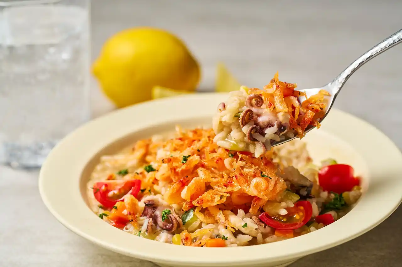 イイダコと桜えび、いろいろ野菜のリゾット |