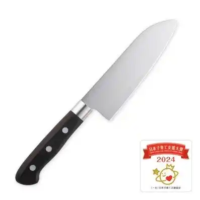 子どもの手に合った小さめのハンドルでしっかりにぎれる、本格刃付けの上級者用包丁です。 |