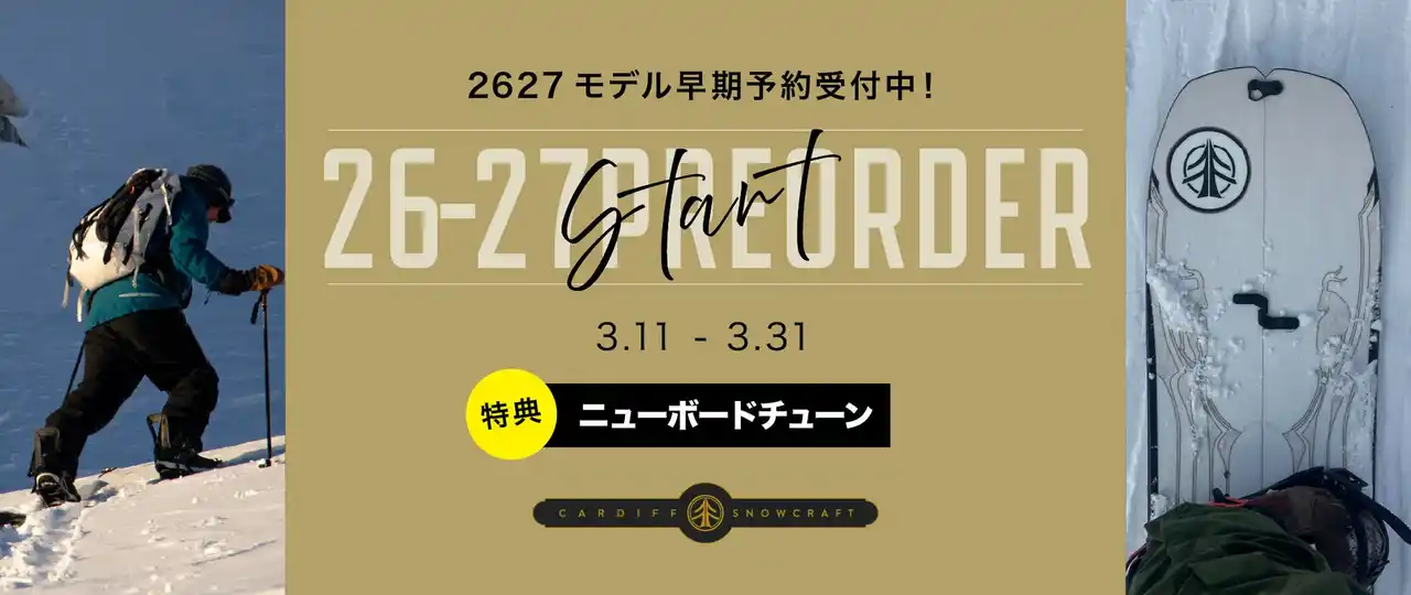| アメリカ・ユタ州の聖地ワサッチ山脈で、建築家兼スノーボーダーのSam Bawdenによって産声を上げた『CARDIFF SNOWCRAFT(カーディフスノークラフト)』。そのプロダクトは、建築的な設計思想に基づく操作性と、自然との共存を前提としたサステナビリティを兼ね備え、バックカントリーという過酷なフィールドで信頼を獲得してきました。 | ||||||||||||||