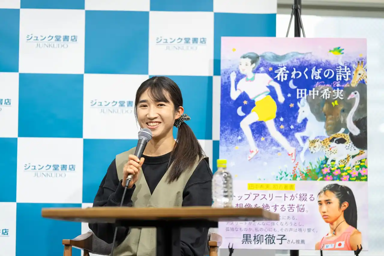 世界文化社は、日本陸上界を牽引するトップアスリート、田中希実選手による初めての著書『希(ねが)わくばの詩(うた)』(2026年 3月26日 発売) を記念して、2026年3月26日(木)にトーク&書籍お渡し会を、ジュンク堂書店 池袋本店で開催。そのトークイベントの様子をレポートします。