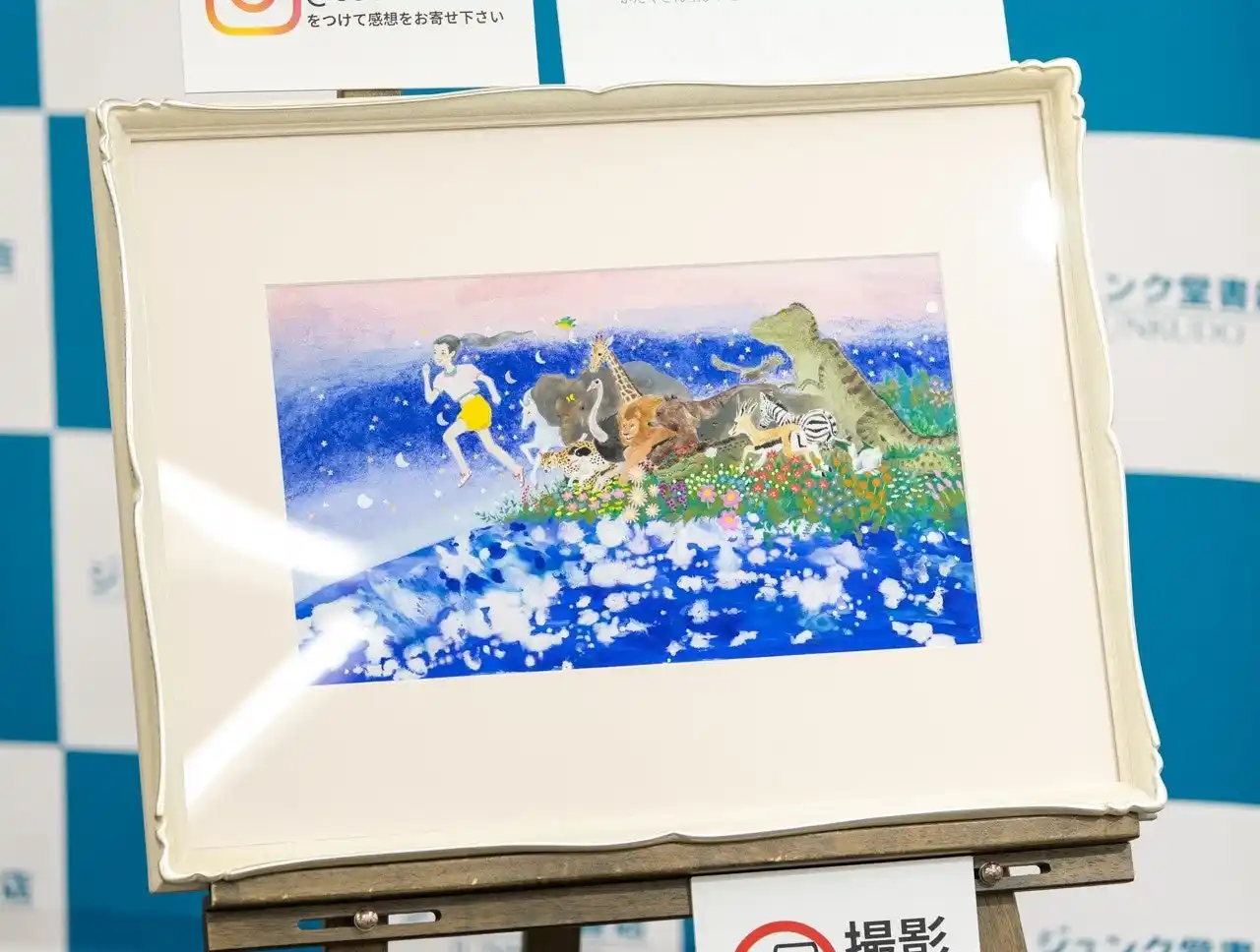 イベントでは、額装された装画の原画を展示。サプライズで橘 春香さんより、田中希実さんへ原画がプレゼントされました。 |