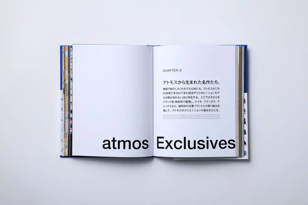 また、「atmos 千駄ヶ谷店」では4月4日(土)から4月16日(木)の期間、スペシャルブック発売を記念したアーカイブ展を実施。25年の歴代モデルからatmosスタッフ25名がそれぞれ選んだ1足がコメントと共に展示されます。 |