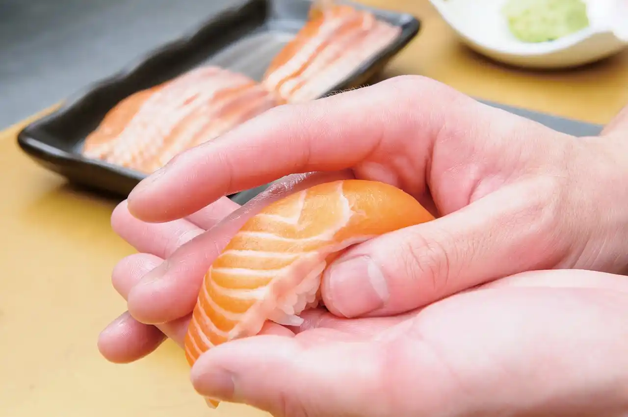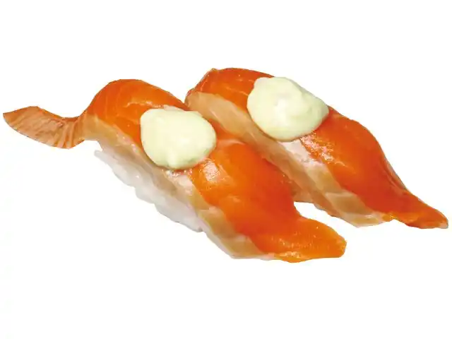 わさびの効いたタルタルソースで楽しむサーモン握りです。 |