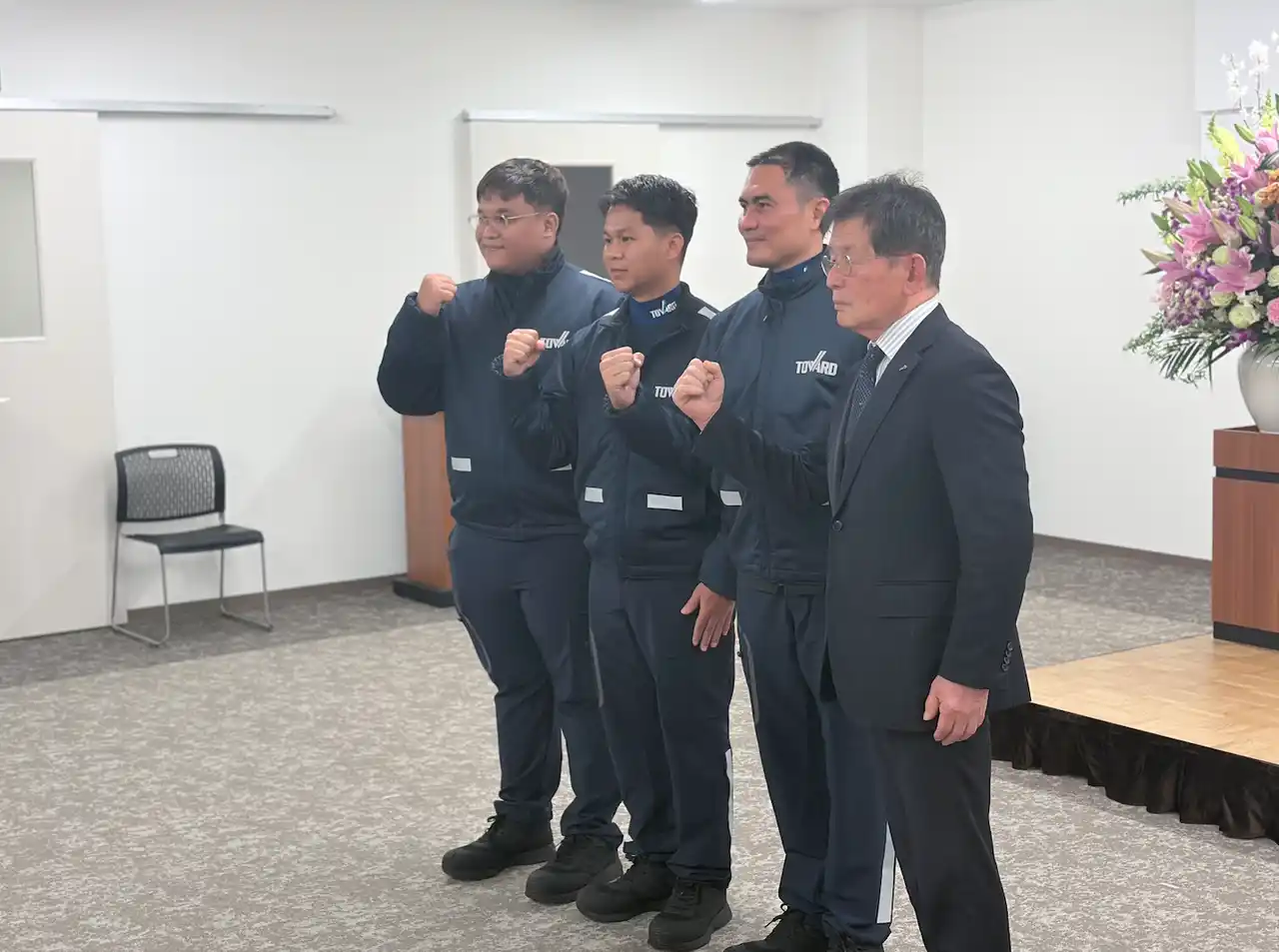 | 佐賀県が物流業界の人材不足対策として取り組む「佐賀県型外国人ドライバーチャレンジ事業」をファクトリーラボ株式会社(サタケグループ)が昨年より受託し、8月にタイ現地にて面接を行い内定をもらっていたタイ人男性3名が2026年2月に無事に入国し、佐賀県内の運送会社株式会社トワード(佐賀県神埼市)に入社いたしました。 | |||||||||