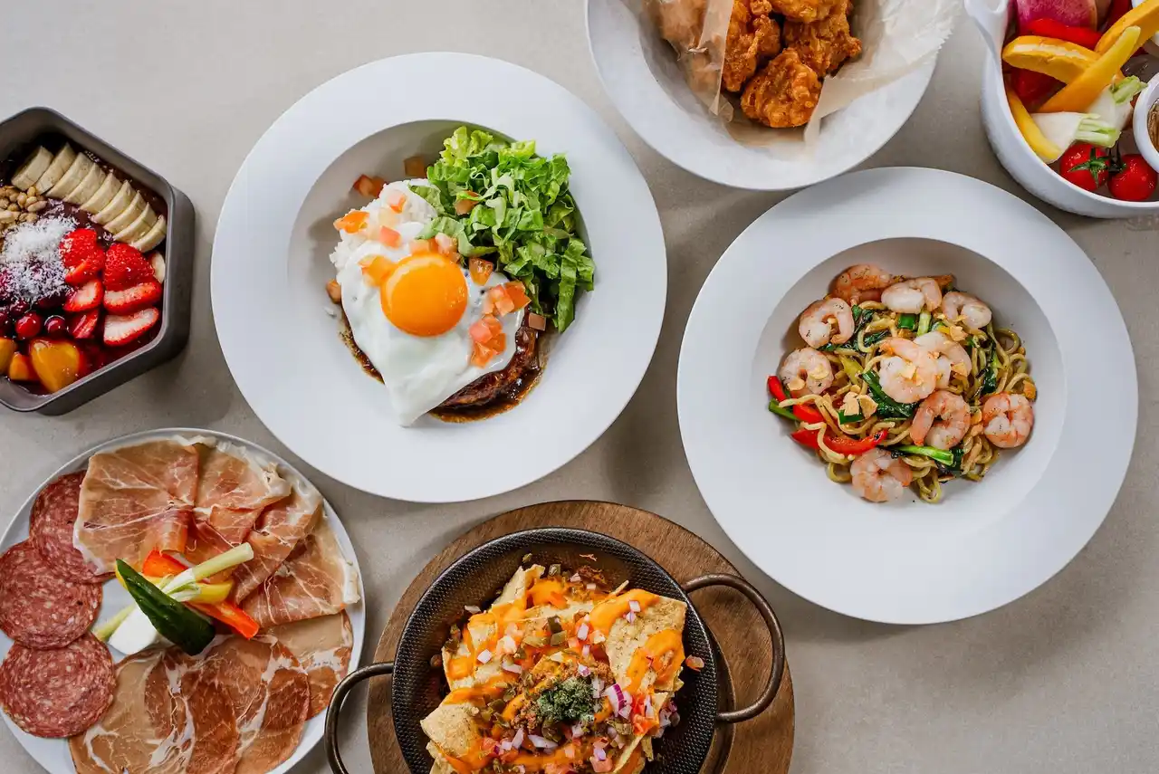 海を眺めながらお楽しみいただける、バリエーション豊かなフード&ドリンクメニューをご用意しています。ローズマリー香る「フレンチフライ ¥900」や「カラマリフリット ¥1,300」などのフィンガーフードから、「レモンシーフード塩焼きそば ¥1,800」「タコライス ¥1,600」などお腹を満たす一皿まで。フルーツを使ったカクテルやシャンパンなどとともにご堪能ください。 |