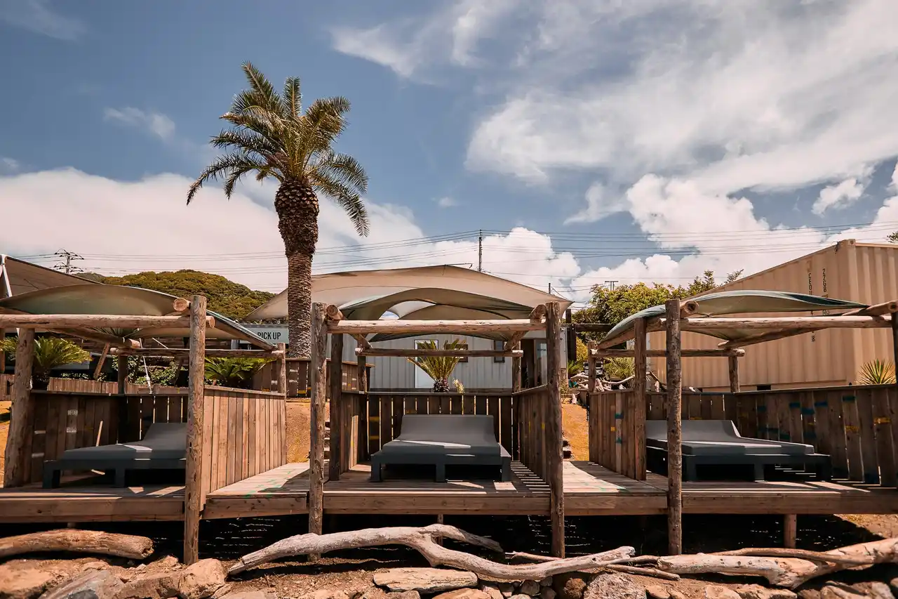 中央には、房総半島に流れ着いた全長5.5mの巨木から生まれた、迫力あるDJブースを配置。週末やイベント時にはゲストDJも登場し、心地よい音楽で空間を満たします。さらに、ビーチシーンに寄り添うフードやドリンクを提供するバーや水着、ビーチサンダル、Tシャツなど、お土産にもぴったりなオリジナルグッズなどを販売するショップも併設しています。 |