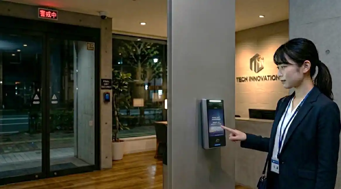 | 従来、最終退場時に施設を警戒警備状態へ移行するためには、施設ごとに発行されるICカードやテンキー入力が必要でした。しかし、ICカードの紛失・盗難や暗証番号の漏洩により、不正に警備状態が解除されるリスクが課題となっていました。 | ||||||||||||||