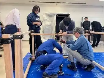 「寄贈時に実施した「つな木」の組み立て講習会 |