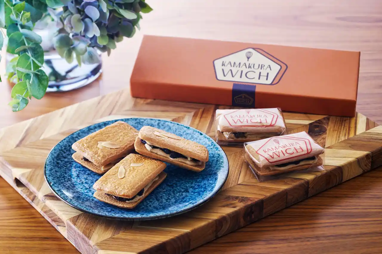 海と山に囲まれ、市内随所に寺院などの歴史的建造物が残され文化や歴史が息づく人気の観光地古都・鎌倉。小町通りや鶴岡八幡宮といった賑わいのある東口エリアとは対照的に、鎌倉駅西口に広がる御成通りは、どこか落ち着いた雰囲気が漂う大人のエリア。その御成通りの中ほどに佇むのが「鎌倉ウィッチ 鎌倉本店」です。人通りが比較的少なく、ゆったりとした時間が流れるこの場所で、鎌倉本店ではカフェも併設。地元の方々や観光のお客様に親しまれています。鎌倉らしい静けさと自慢のお菓子を味わえる場所。それが、鎌倉本店の魅力です。 |