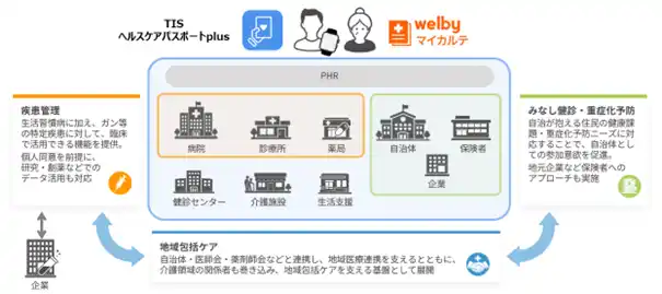 TISインテックグループのTIS株式会社(本社:東京都新宿区、代表取締役社長:岡本 安史、以下:TIS)と株式会社Welby(本社:東京都中央区、代表取締役:比木 武・山本 武、以下:Welby)は、PHR※1を活用した地域包括ケア実現に向けた事業を共同で推進するため、2026年7月以降、「ヘルスケアパスポートplus」の提供を開始することを発表します。 |