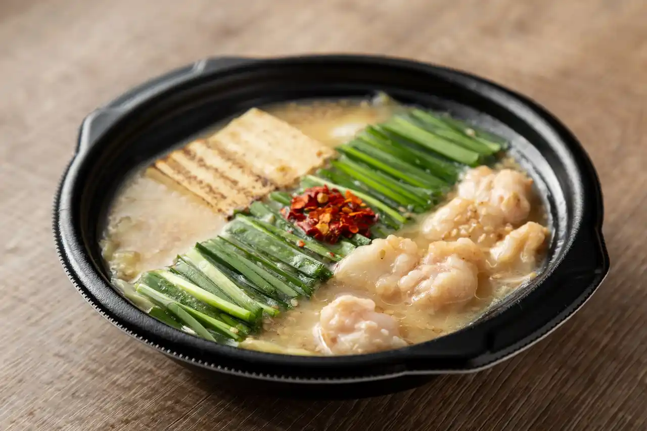 主役の国産牛もつは小腸のみ、こだわりの真っ直ぐに並べられたニラ、程よい食感のキャベツ、風味豊かなごぼう、そしてスープが染み込んだ豆腐まで、もつ鍋に欠かせない具材をオールインワンで詰め込みました。 |