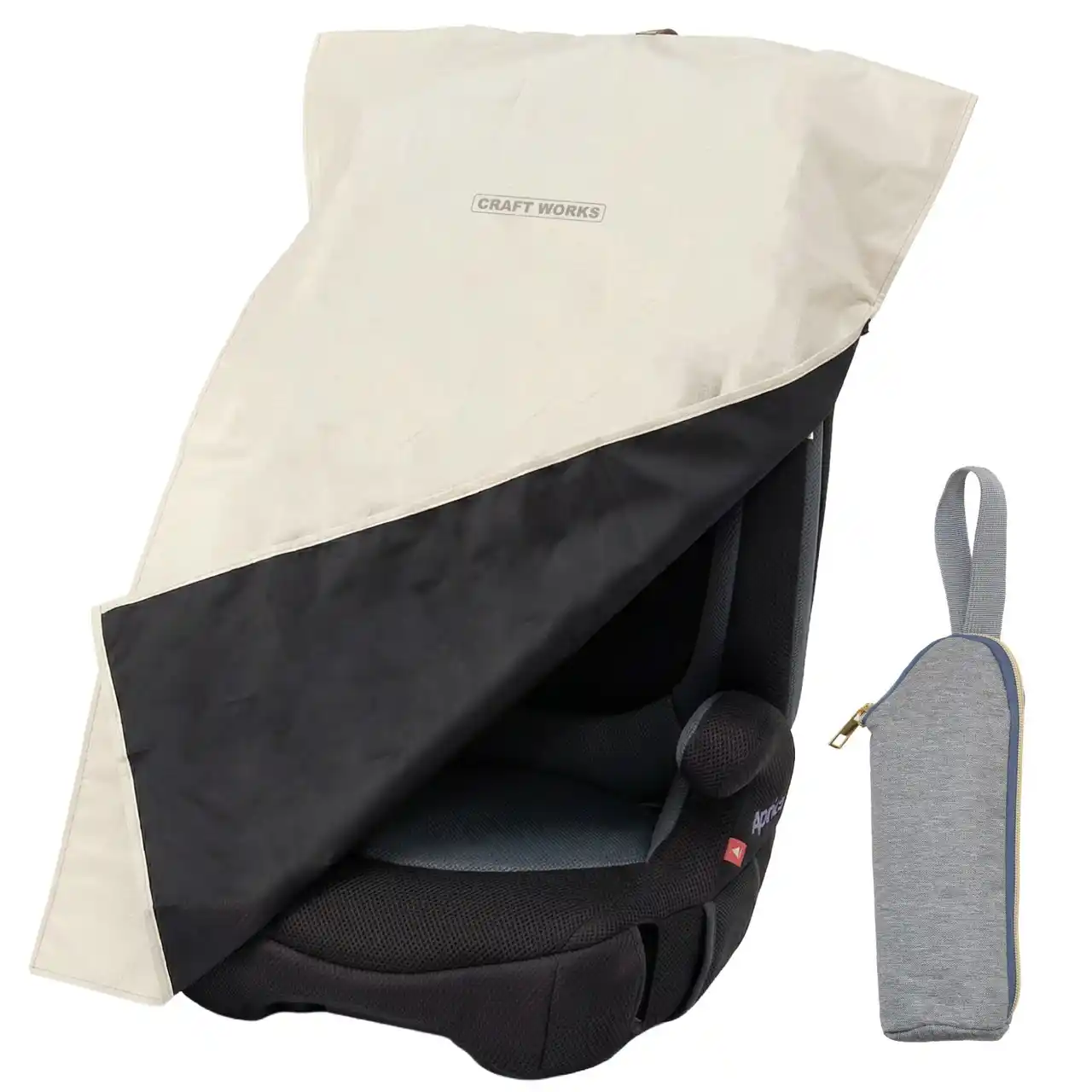 | 付属の収納ケースは、断熱材を使用した「保冷ドリンクホルダー」としても機能します。カバーを使用している間は、赤ちゃんの飲み物を冷たく保ち、移動中はカバーをコンパクトに収納可能。荷物が増えがちな子育て世代のニーズに寄り添い、「あれば嬉しい」を標準装備にしました。 | |||||||||||||||