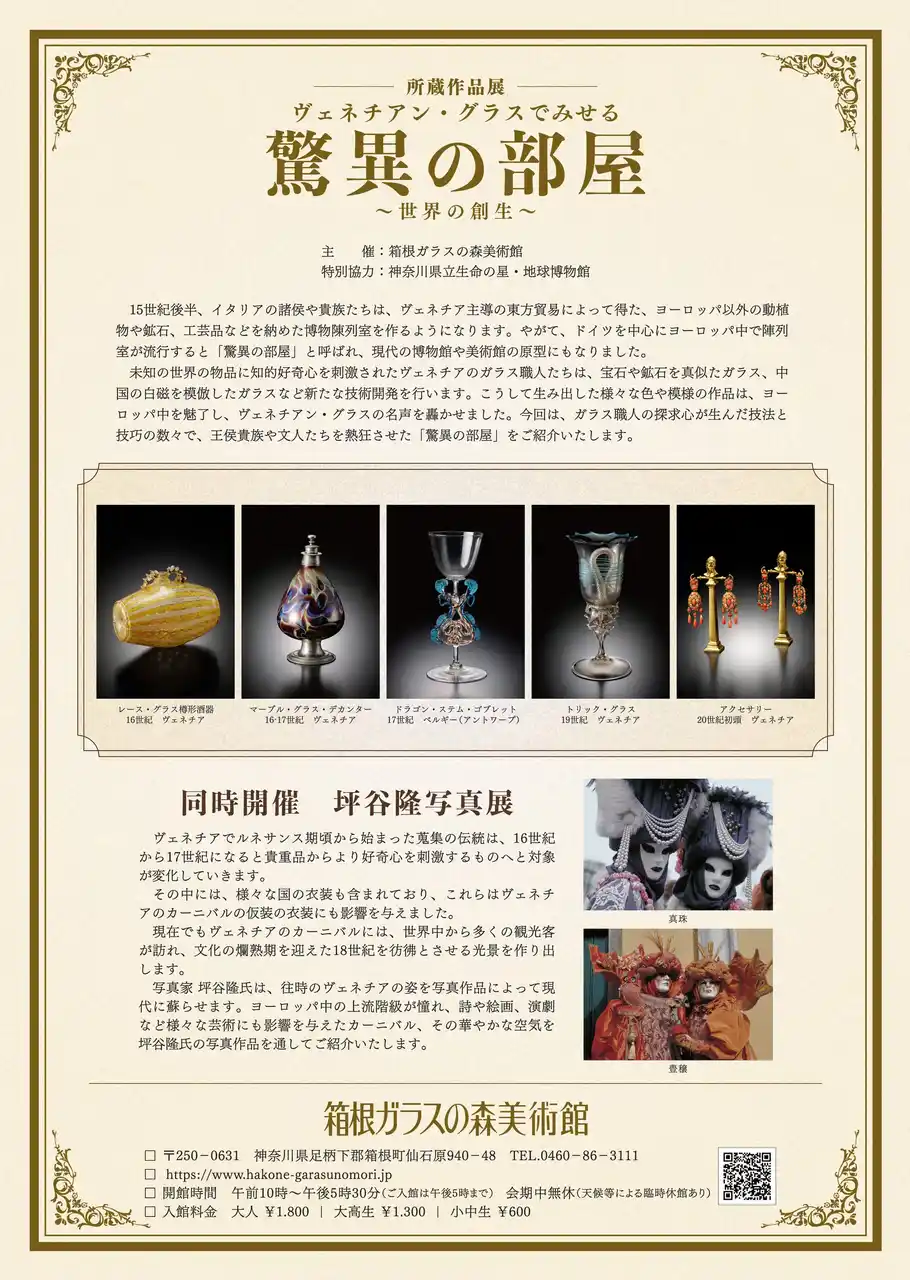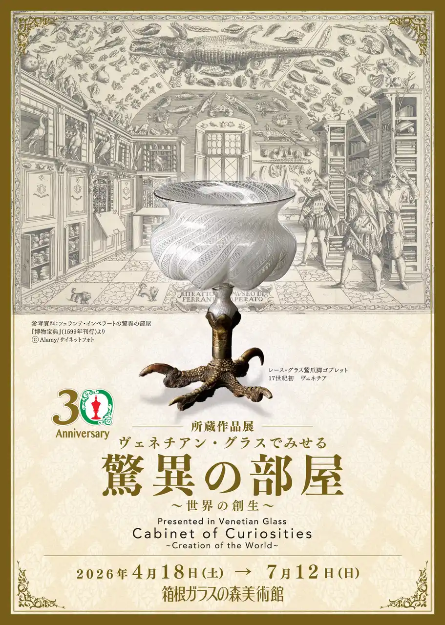 | 箱根ガラスの森美術館(神奈川県足柄下郡箱根町仙石原940-48)は、所蔵作品展「ヴェネチアン・グラスでみせる驚異の部屋 ~世界の創生~」を、2026年4月18日より開催することを決定しました。 | |||||||||