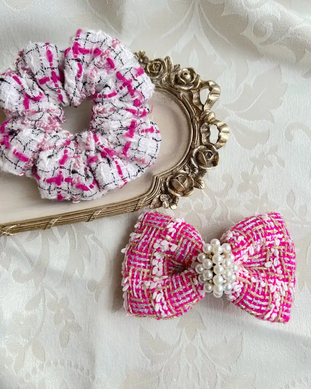 ツイードならではの奥行きのある色合いは、推しカラーをさりげなく取り入れられるのがポイント。ポーチやバッグ、ヘアアクセサリーなど日常使いしやすいアイテムだからこそ、普段のコーディネートに自然に溶け込み、無理なく“推し”を感じられます。 |