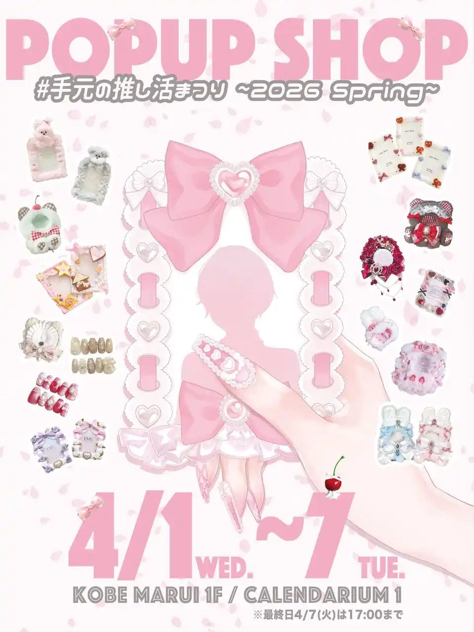 “推しと一緒に過ごす毎日”を彩るハンドメイドアイテムを取り揃えたPOPUP SHOP「#手元の推し活まつり ~2026 Spring~」が神戸で初開催!会場には全30ブランド・2,500点以上の推し活アイテムが集結。あなたの“推し色” や“推しの世界観”にぴったりの一点と出会えます。 |