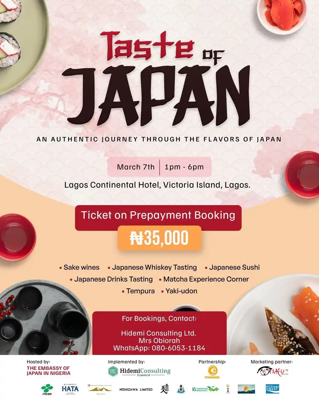 株式会社STANDAGE(読み:スタンデージ、本社:東京都港区、代表取締役:足立 彰紀、以下「STANDAGE」)は、2026年3月7日(土)、ナイジェリアのラゴスにて開催された在ナイジェリア日本国大使館主催の文化啓発イベント「Taste of Japan」にパートナー企業として参画いたしました。 |