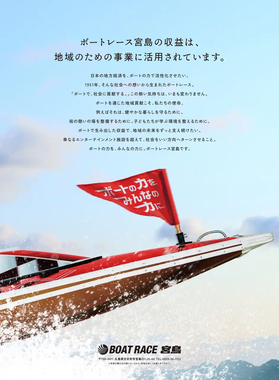 | ボートレース宮島は「ボートの力を、みんなの力に。」をスローガンに掲げることとしました。 |
