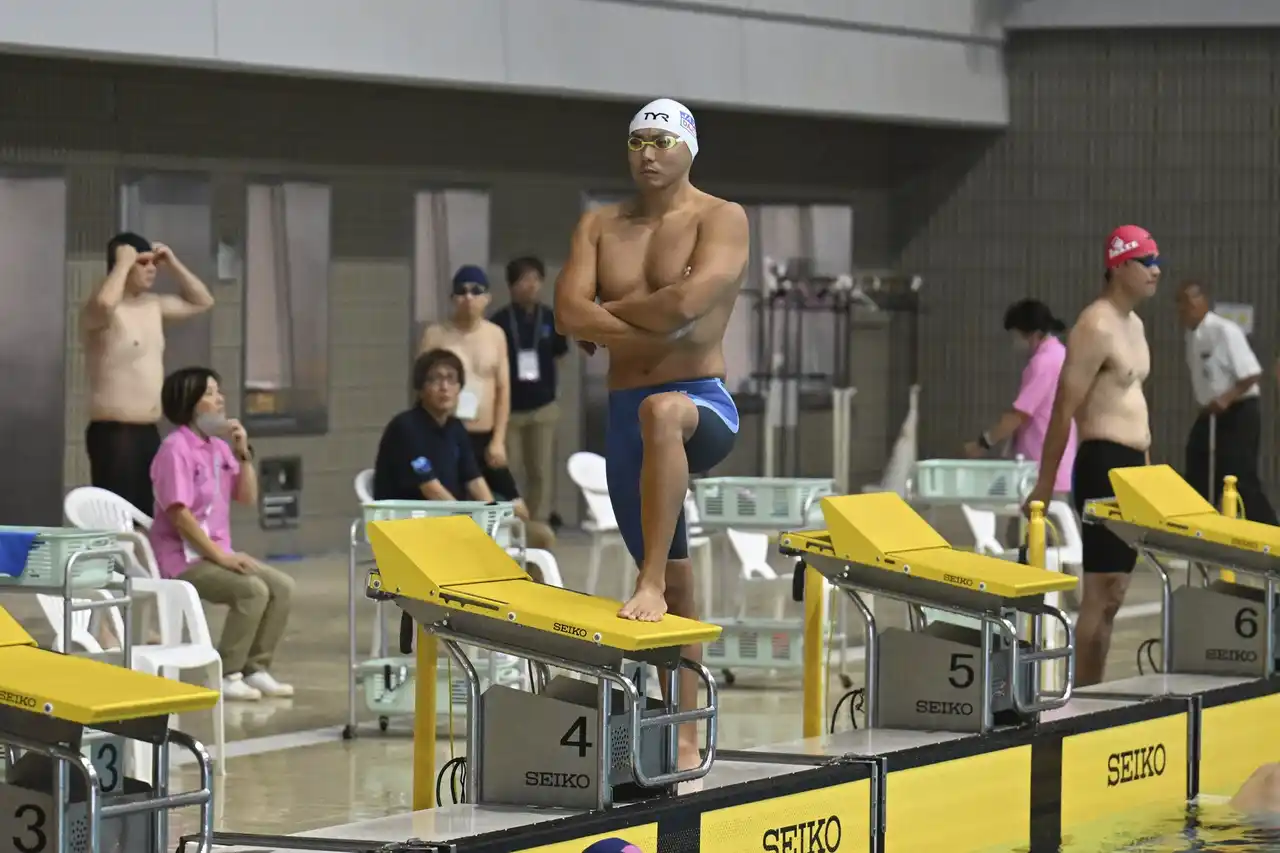 高校から水泳を始めてわずか3年で、50m自由形でジュニアオリンピック出場、そして2年で日本選手権の標準記録を突破。日本トップクラスのパワー、100mをノーブレスで泳ぐ8,550ccの肺活量、182.1cmの長身、そして32cmの足を武器に、国内、海外の強豪達と競う。まさにビッグフットの異名を持つ怪物。 |