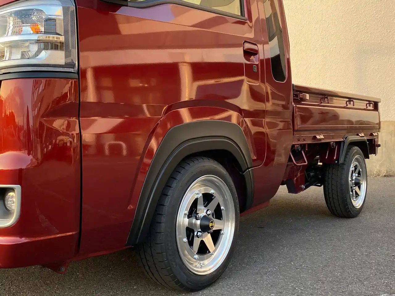 | 本製品を装着することで、車両全体にワイド感と力強さをプラス。オフロードテイストやカスタムホイールとの相性も良く、軽トラックでありながら存在感のあるスタイルへと仕上げることが可能です。 | |||