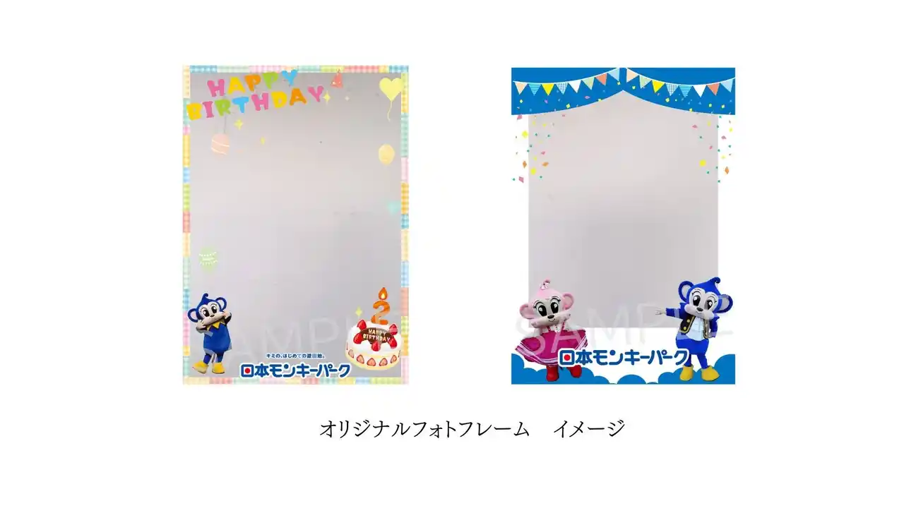 モンキーパークオリジナルのお誕生日用デジタルフォトフレームの提供を開始します。2才から6才の年齢別デザインをはじめ、どの年齢でもご利用いただけるデザインの計6種類が登場します。 |
