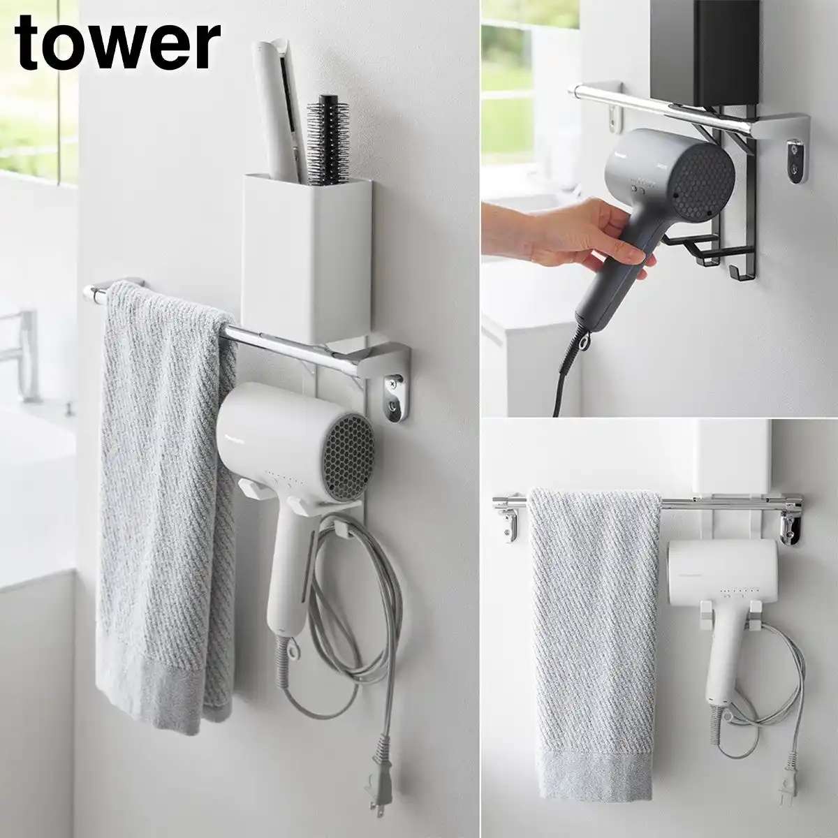 ■タオルバーに簡単設置!ドライヤー&ヘアーアイロンホルダー