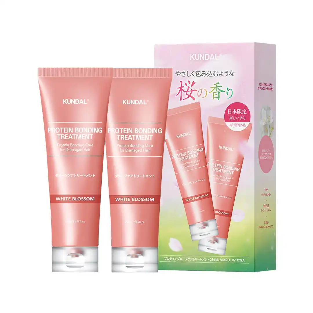 KUNDAL独自のプロテインボンディングシステムを採用し、ダメージヘアケアに特化したトリートメントを、日本限定の2個セットでご用意しております。新しい香りとともにアップグレードされた、季節感あふれるアイテムです。 |
