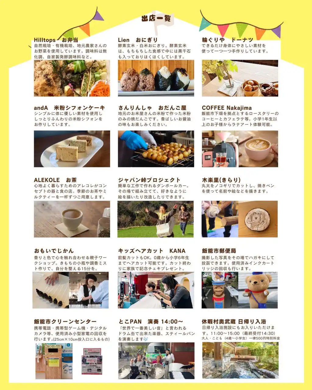 11:30~15:00 ワークショップ・食品販売 |
