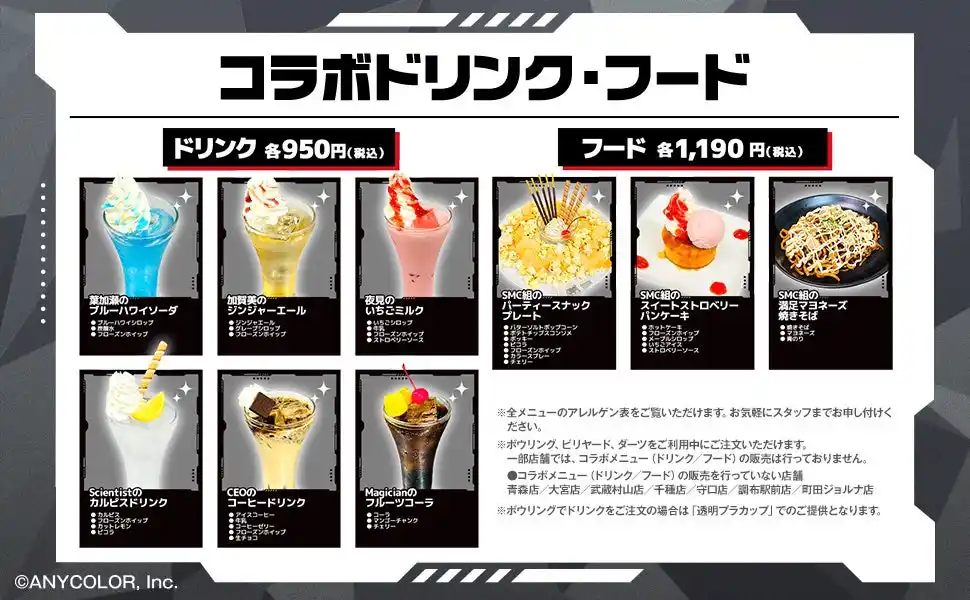 全国のボウリングとスポッチャ、ビリヤード、ダーツ92店舗でコラボメニューを販売いたします。 |