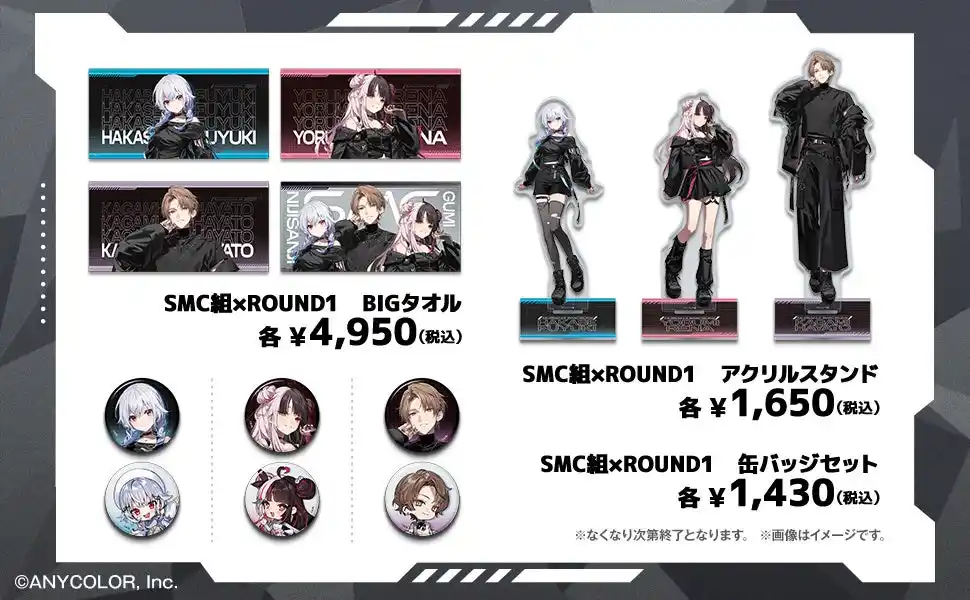 ROUND1の一部店舗にて、撮り下ろしビジュアルを使用したオリジナルグッズを販売いたします。 |