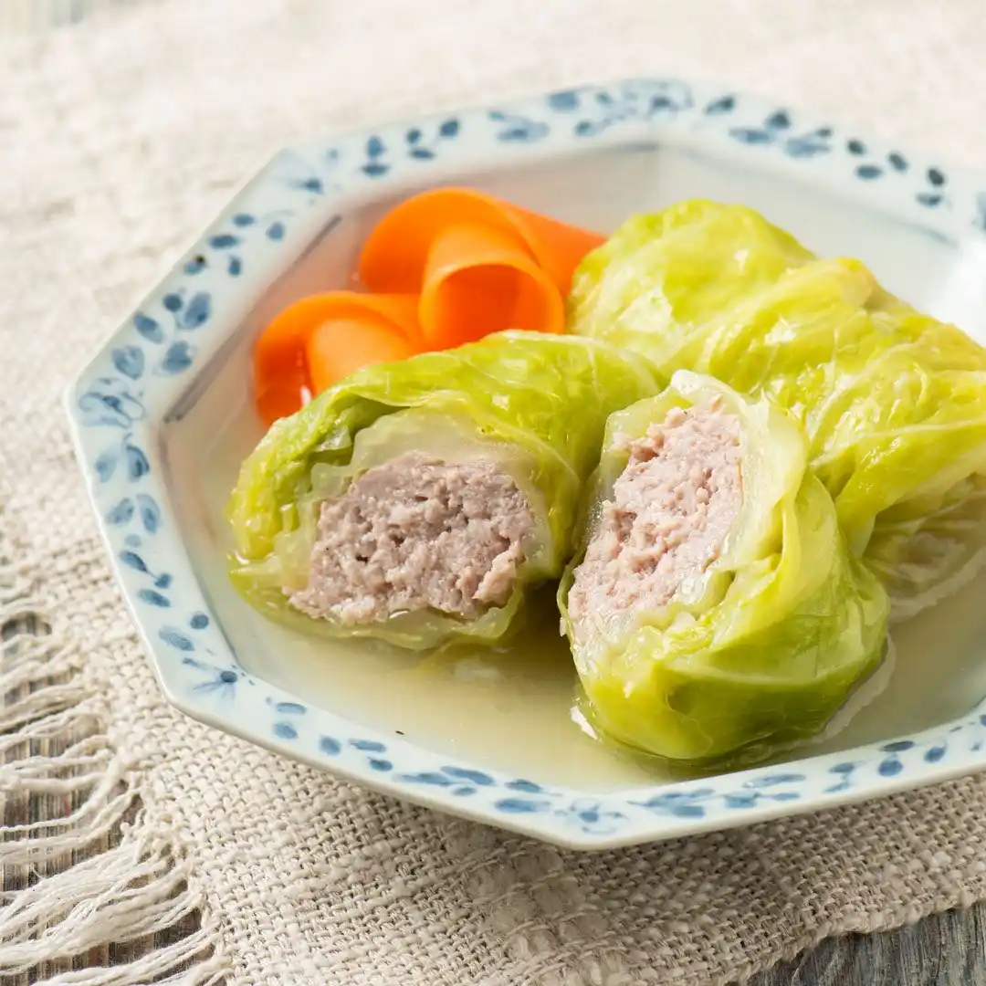 粉末野菜だしをお湯にサッと溶かし、お醤油とお塩で調えるだけで本格スープの完成。春キャベツの甘みがグッと引き立つ、やさしく味わい深いロールキャベツに仕上がります。 |