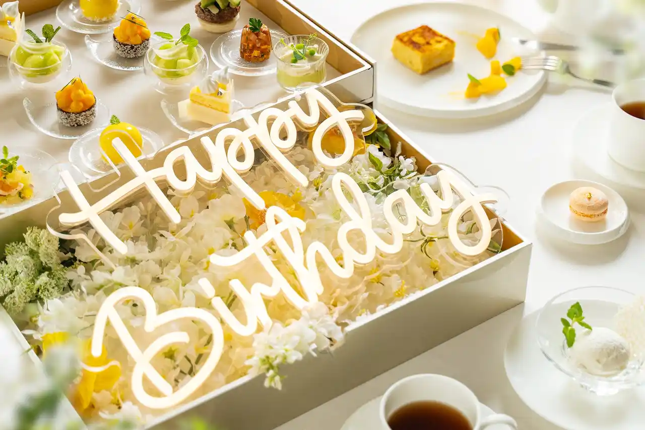 | ザ ジャクソン ガーデンでは、誕生日や結婚記念日など、大切な記念日を祝うための特別なサービスをご提供しております。特に人気のサービスとして、BOX下段に設置された「HAPPY BIRTHDAY」のネオンサインや、フレンチトーストにチョコペンでメッセージを添えるサービス(事前予約制・無料)がございます。大切な方との祝福のひとときを、より一層特別なものとしてお楽しみいただけます。 | ||||||||||||||