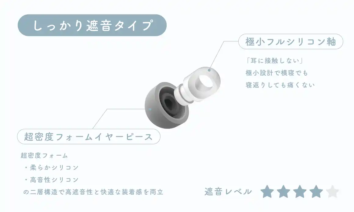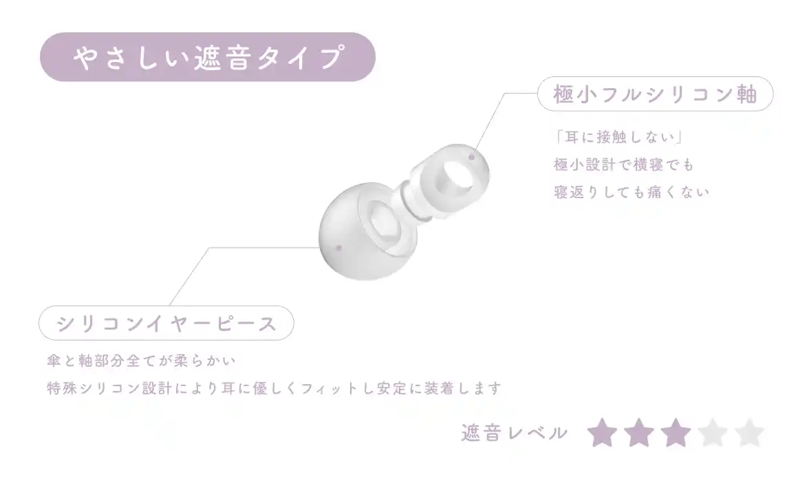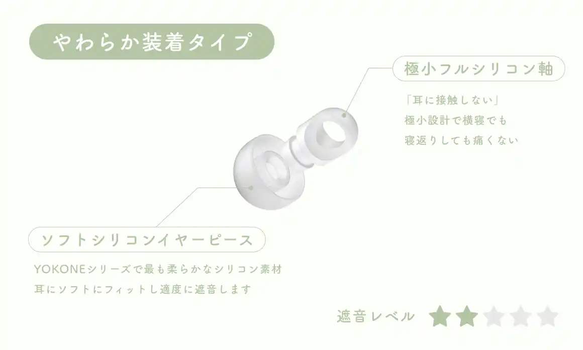 横寝・長時間使用に最適。初めて耳栓を使う方にもおすすめです。 |